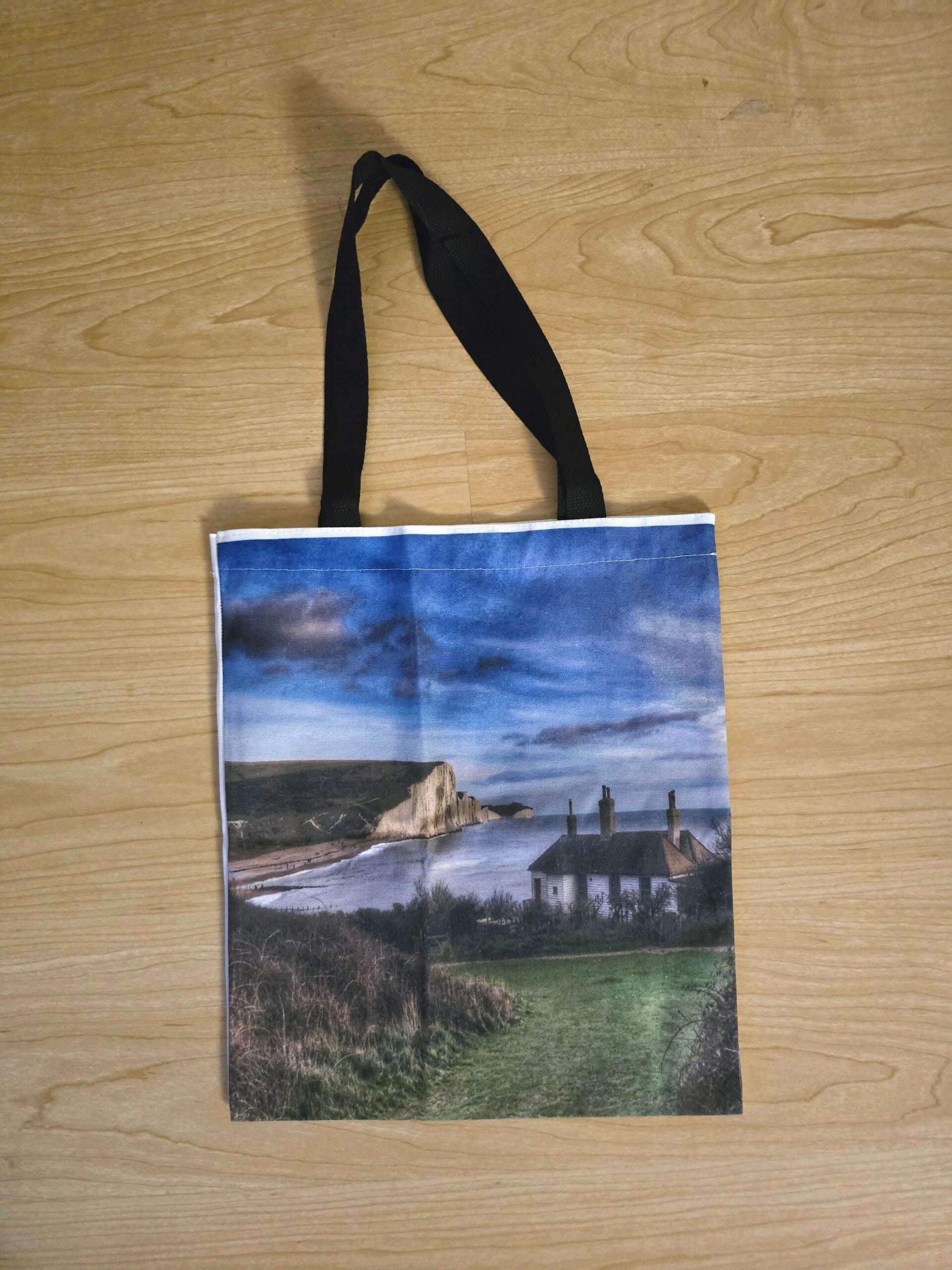 Beautiful canvas bag with black handle, approx 38cm x 32cm (not including handle).