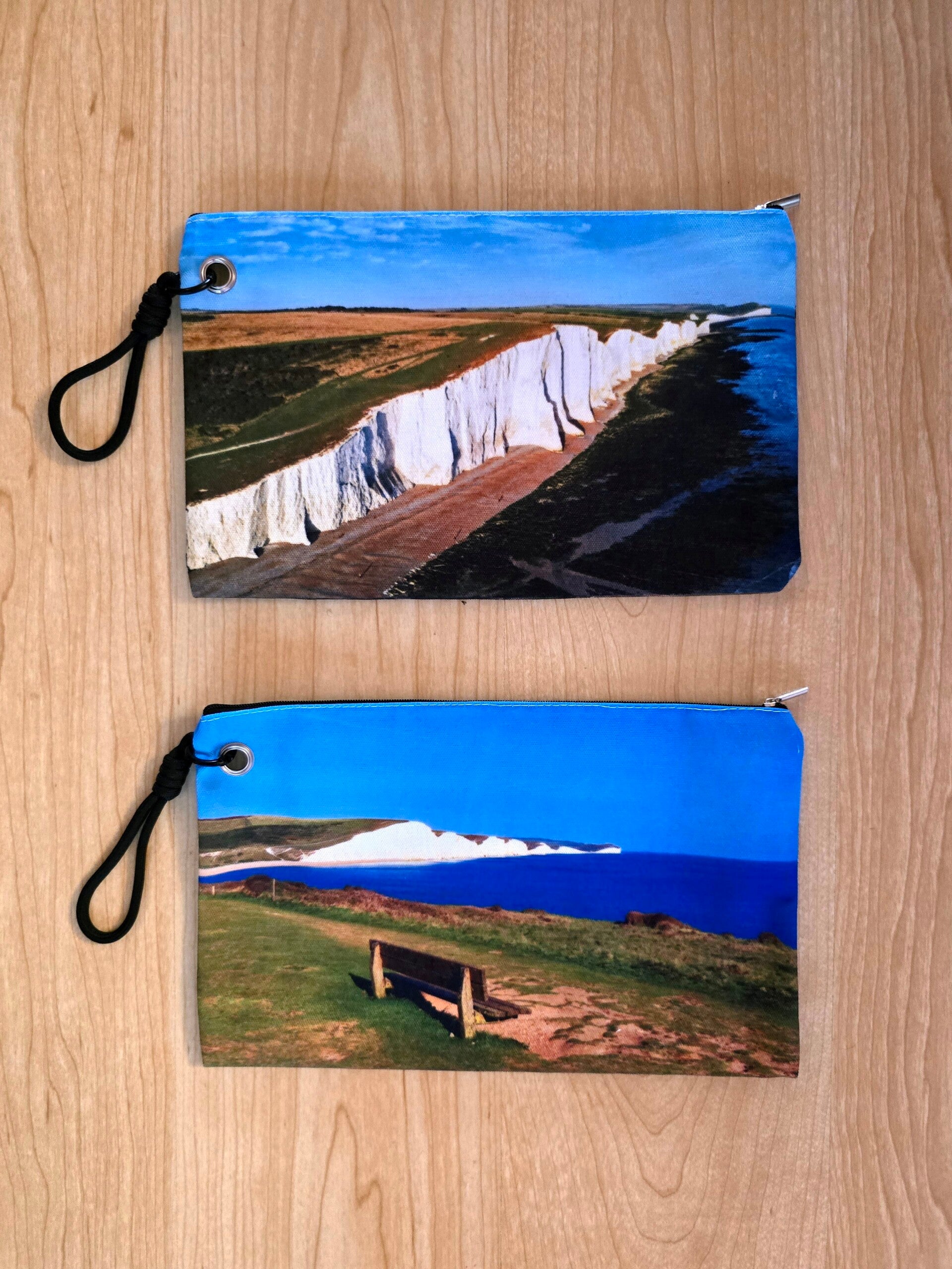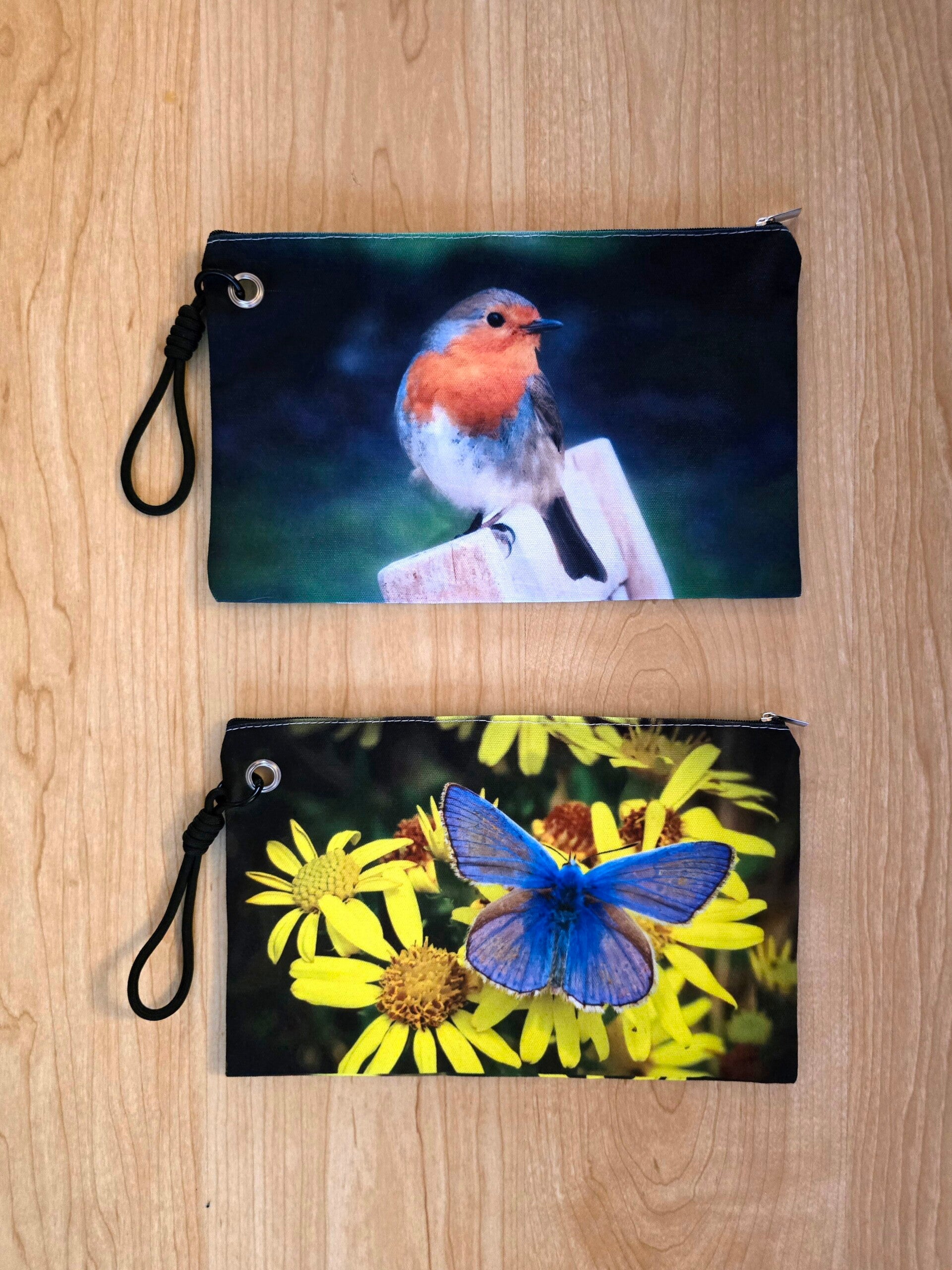 Beautiful double sided canvas cosmetic bag with black handle, approx 28cm x 17cm (not including handle).